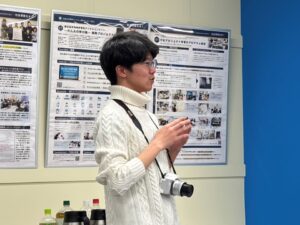 - 研究テーマについて紹介する松原さん