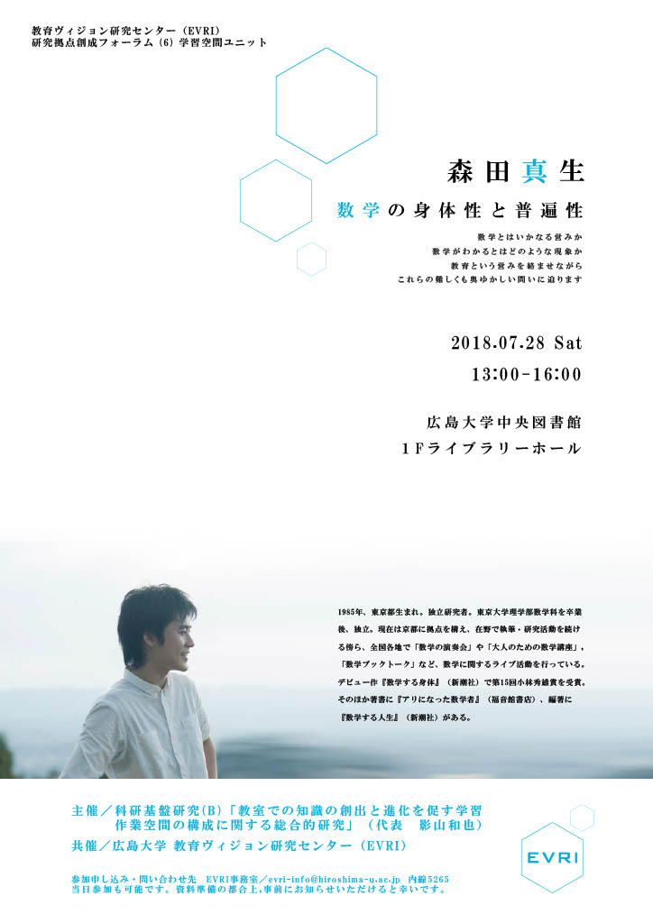 研究拠点創成フォーラム6「数学の身体性と普遍性」 | 登壇者:森田真生(独立研究者) | ![]() |
