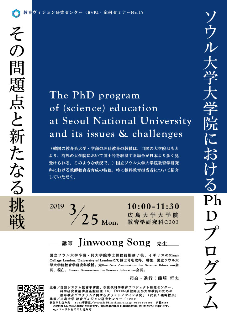 定例オンラインセミナー講演会No.17 「ソウル大学大学院におけるPh.Dプログラム–その問題点と新たなる挑戦–」 |