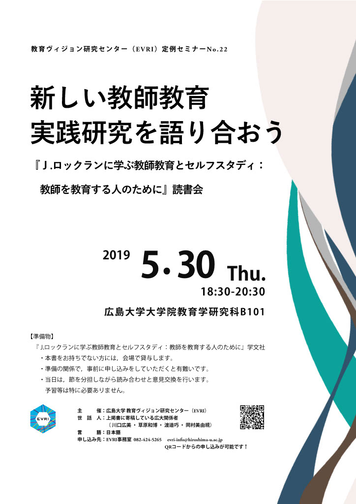 | 2019年5月30日(木) 18:30-20:30 広島大学教育学研究科B101 (EVRI室) |