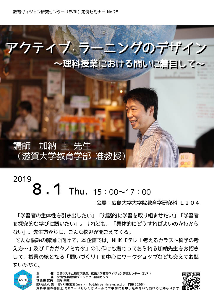 | 2019年8月1日(木) 15:00-17:00 広島大学教育学部L204 |