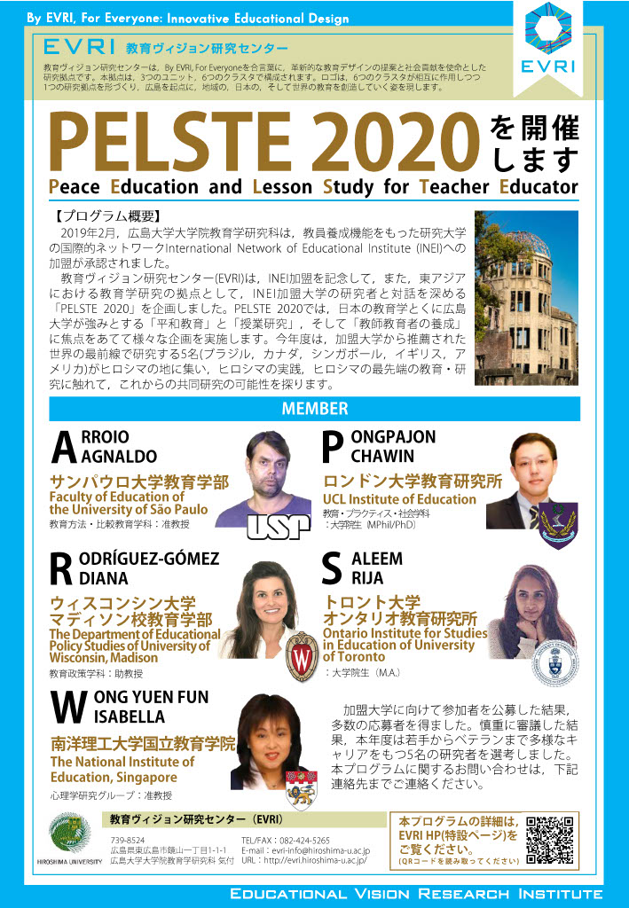 | 2020年2月20日(木) 18:30-20:00 広島大学教育学研究科B101 (EVRI室) |