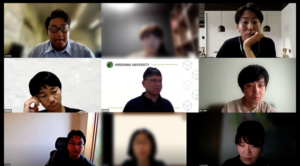 「共有パート」では,論文題目の提出を終えた2つの共同研究グループによって,論文の構成案や執筆状況について報告が行われました。