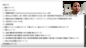 次に,大坂教育研究推進員より講座全体についてのオリエンテーションが行われました。Microsoft Teamsをはじめとしたアプリケーションの使用方法,毎月のオンライン講座の流れ,各回の学習課題などの基本事項を確認しました。特にこの講座は,履修証明プログラムとして,オンラインで完結しつつも,共同研究グループを組織し,学術論文の執筆を行うことや,学術論文での学びをアウトプットすることを中心とした学びの中にインプットがあるという特徴を持つ全国でも大変珍しい特質を持つ講座であるということが強調されました。